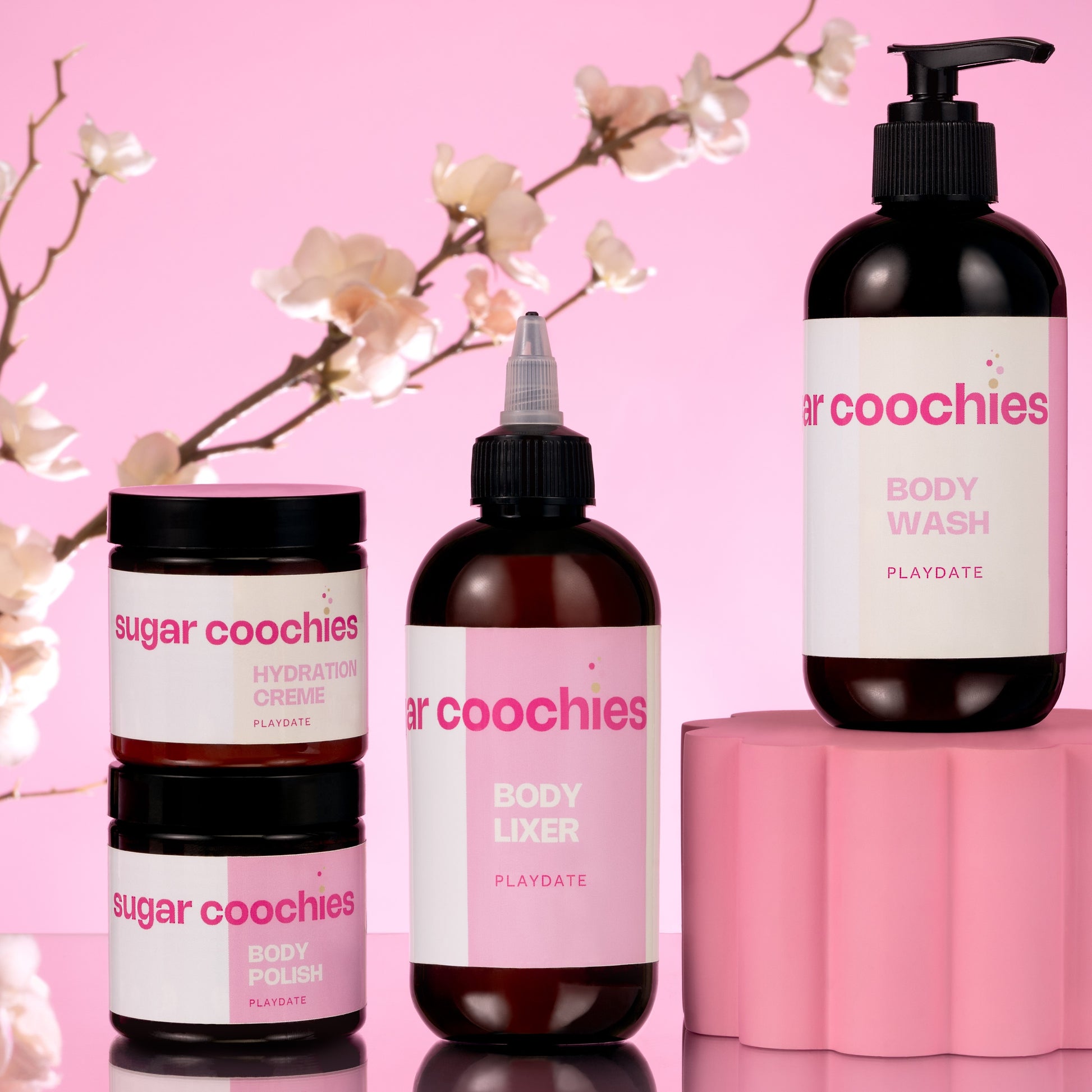 The SWEETEST Body Care Set! A luxurious collection designed to pamper and nourish your skin. This set includes a gentle Body Wash, a revitalizing Body Scrub, a velvety Body Butter, and a soothing Body Oil. Indulge in the delightful sweetness while these products cleanse, exfoliate, and hydrate your skin--leaving it soft and supple. The light yet long-lasting gourmand fragrance--with hints of vanilla and cashmere-- will keep you feeling fresh and delightful all day long. Treat yourself to the ultimate body care experience with our SWEET BODY collection!